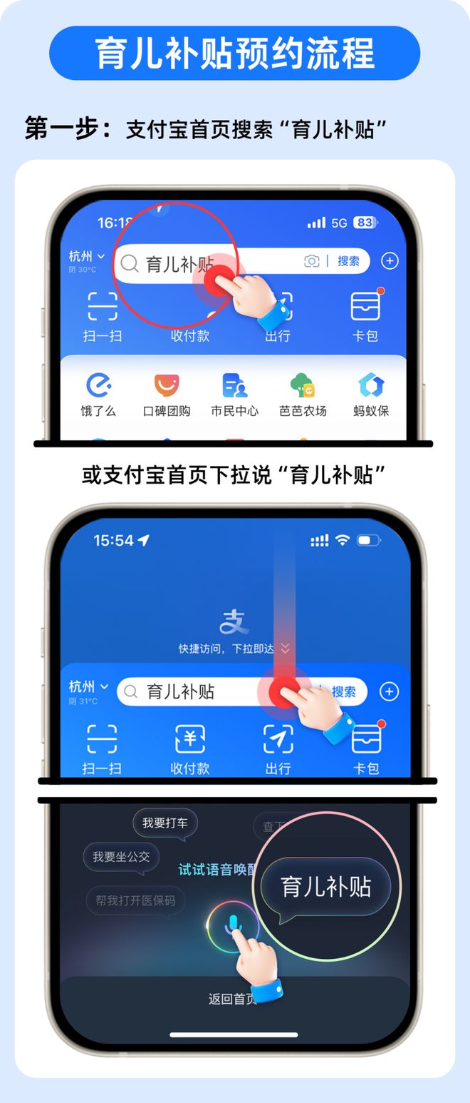 用户也可以在支付宝首页下拉,点击“语音球”说“育儿补贴”即可直达服务。此外,用户还可使用服务页面上的“育儿补贴计算器”功能算出可申领的补贴金额,例如,如果孩子是2024年7月1日出生,可申领补贴为9300元。