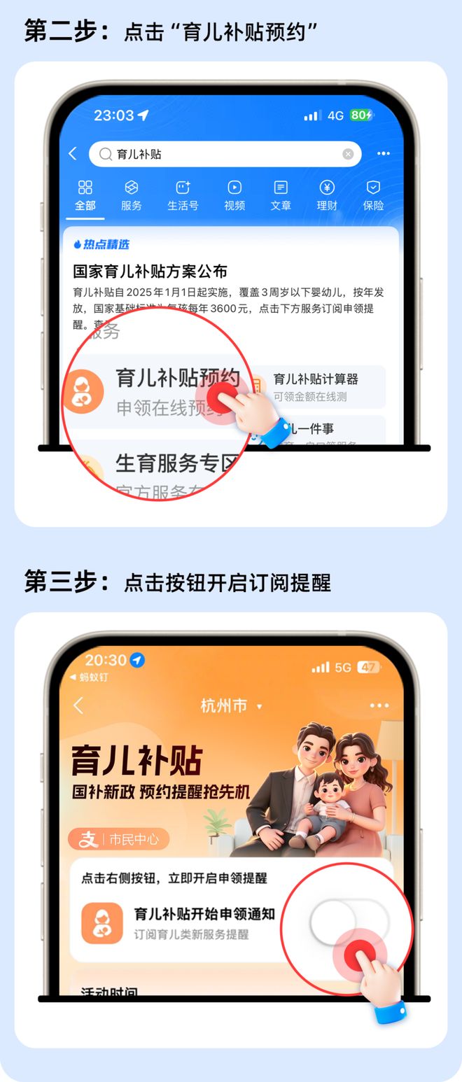 此外,即日起,符合规定的用户可上支付宝搜“育儿补贴”,一键预约,开启申领通知,最高可领10800元。