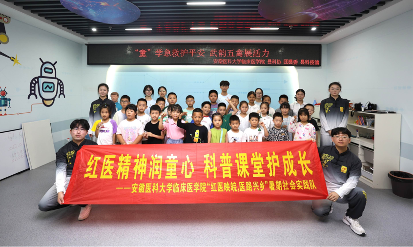 开云官方为响应时代号召,安徽医科大学临床医学院“红医映皖,医路兴乡”实践团队,在6月28日至29日走进六安市霍山县科技馆,以“医学科普+文化传承”双轮驱动,为乡村和社区儿童打造“急救防护课堂”“科学实验室”“非遗武术工坊”三大沉浸式体验场景,让科学与传统在情景体验中绽放光芒。